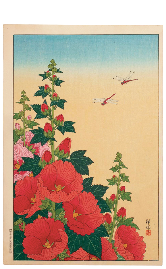 “Koson brought bird-and-flower imagery to a new level of poetic realism, balancing natural observation with an unmistakably modern sense of design.” “Koson’s kacho-ga achieve their power through understatement—subtle gradations of color, carefully cropped compositions, and an acute awareness of seasonal mood.”