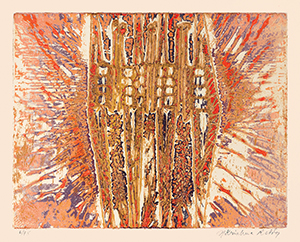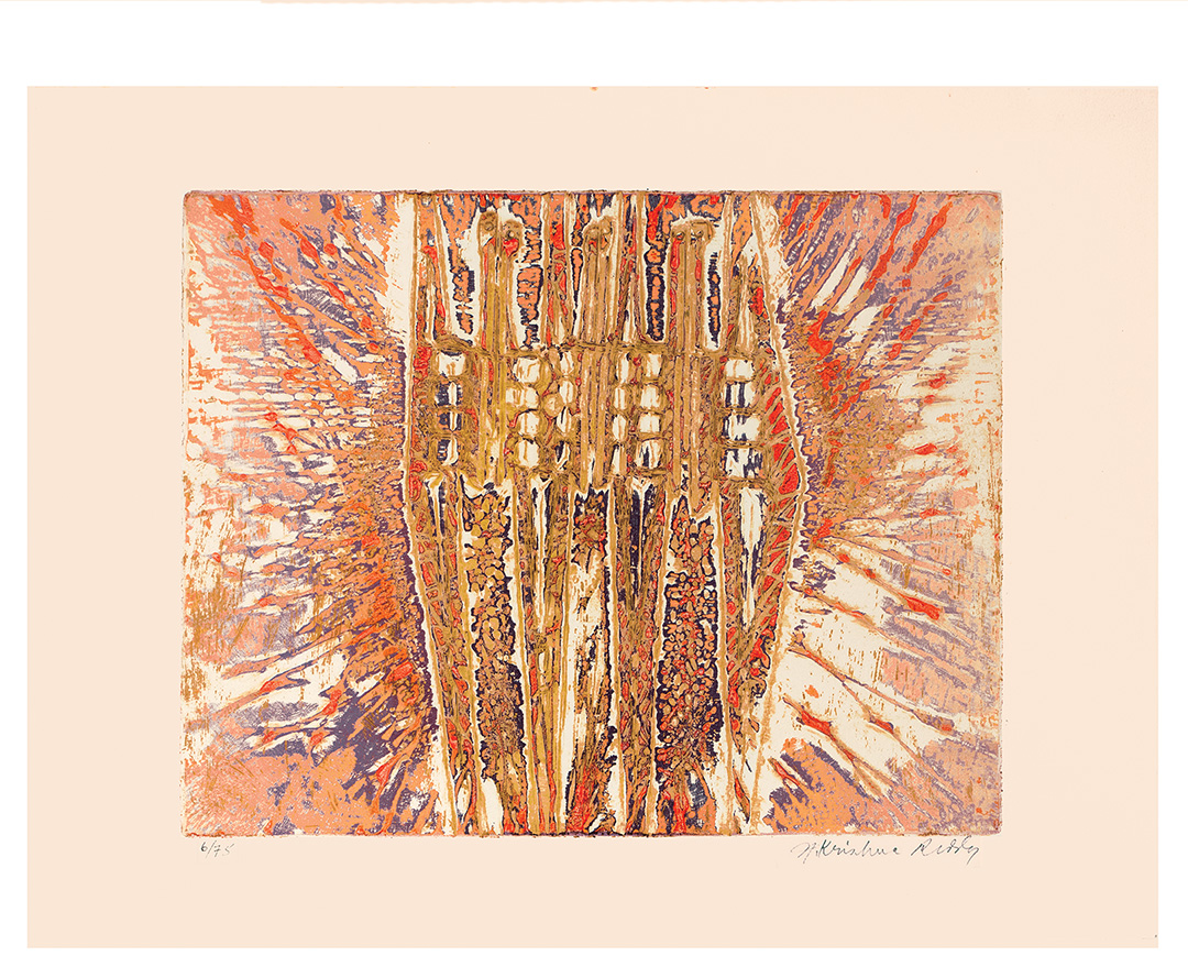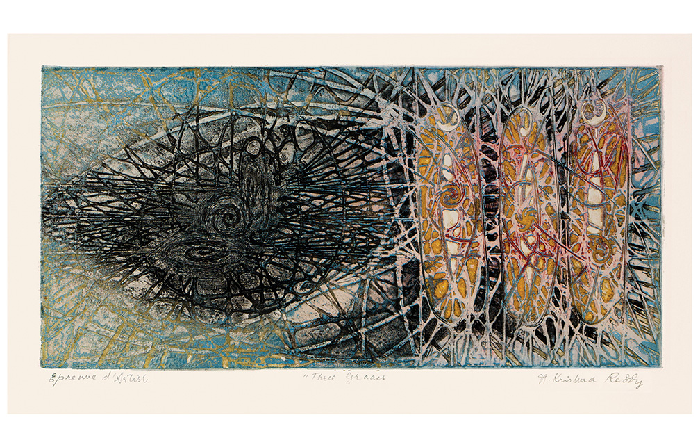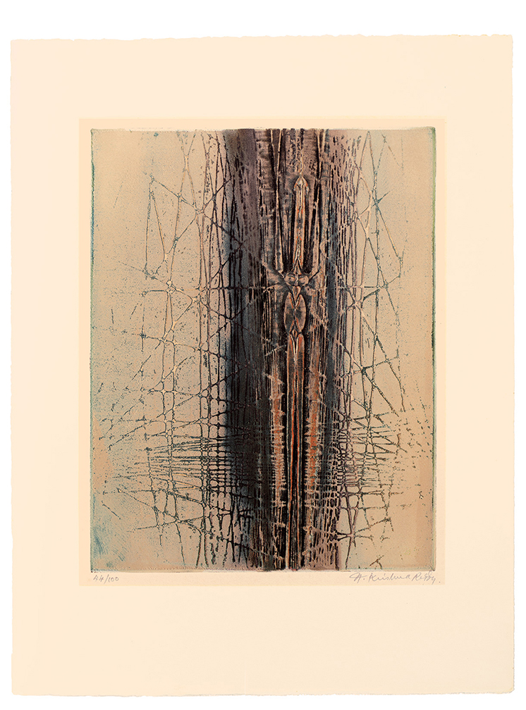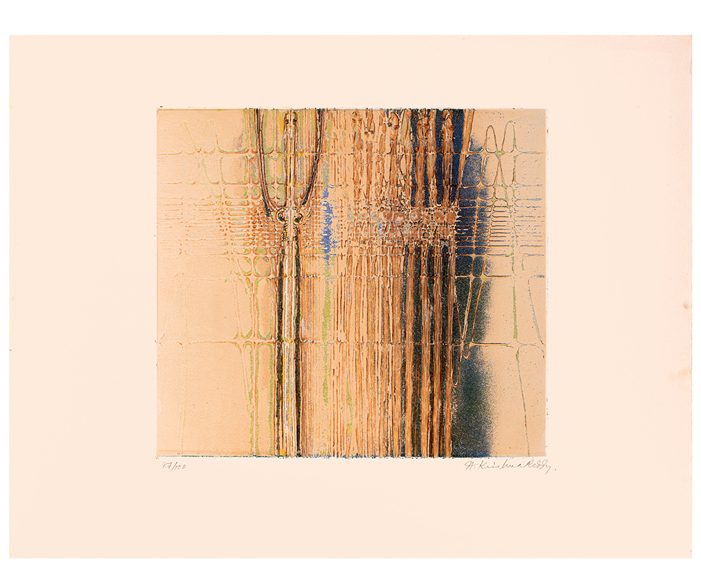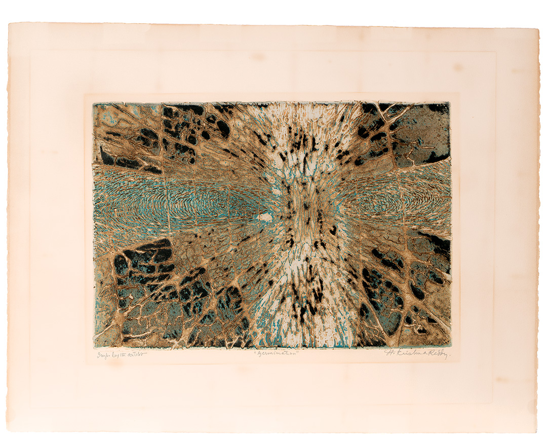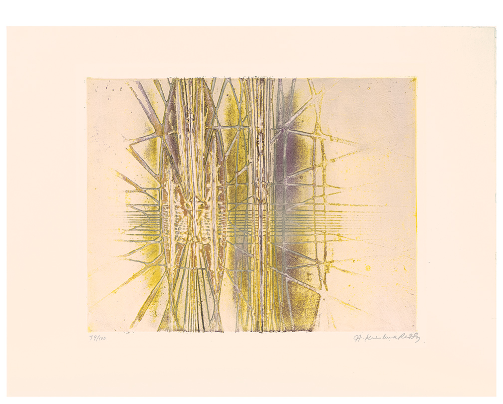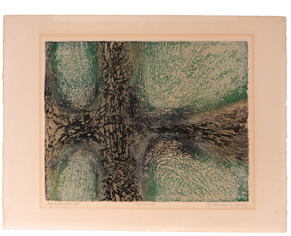 Krishna Reddy was an Indian-born artist, printmaker, and educator whose technical innovations and deeply philosophical approach to art helped reshape modern printmaking. Best known as the pioneer of viscosity printing, Reddy combined scientific curiosity with an intensely spiritual vision, creating works of great lyrical abstraction that bridged Eastern thought and Western modernism. Reddy was born on July 15, 1925, in Nandanoor, near Chittoor in Andhra Pradesh, India. From a young age, he was drawn to both art and philosophy, interests that remained central throughout his career. He studied fine art at Santiniketan, the art school founded by Rabindranath Tagore, where he was influenced by Nandalal Bose and Ramkinkar Baij, both emphasizing the union of craft, tradition, and modernist experimentation. In 1947, Reddy traveled to London, where he studied sculpture at the Slade School of Fine Art under Henry Moore. He soon began working in Paris, attracted to the international avant-garde community there in the postwar years. Paris became Reddy’s artistic home from the early 1950s onward. He studied sculpture with Ossip Zadkine and drawing with Fernand Léger, absorbing various styles of modern European art. Most importantly, he joined Atelier 17, the experimental printmaking workshop led by visionary British artist Stanley William Hayter. At Atelier 17, Reddy collaborated with artists such as Joan Miró, Alberto Giacometti, and Pablo Picasso. It was here that he developed his major contribution to printmaking: viscosity printing. This innovative intaglio technique uses inks of different viscosities and rollers of varying hardness to print multiple colors at once from a single plate. The process produced rich textures, depth, and luminosity, opening new opportunities for abstraction in printmaking. Reddy’s prints and sculptures reflect his belief in the interconnectedness of all life forms, drawing from Indian philosophy, modern science, and his lifelong interest in cosmology and ecology. His abstract shapes often resemble cellular structures, geological layers, or cosmic landscapes, evoking a sense of both micro and macro universes. Through his work, Reddy aimed to reveal underlying order and unity amid the flux of natural and human experience. Beyond his art, Reddy was a dedicated teacher who introduced many students to the potential of printmaking. He taught at several institutions, including New York University’s Art Department, where he worked from 1976 until his retirement. His teaching focused on experimentation, technical skill, and cultivating a personal vision. Reddy exhibited worldwide, with solo and group shows in India, Europe, and the US. His work is included in major museum collections such as the Amon Carter Museum of American Art (Fort Worth), the National Gallery of Art (Washington, DC), the Metropolitan Museum of Art, the Museum of Modern Art (New York), the M+ Museum (Hong Kong), the British Museum (London), the Victoria and Albert Museum (London), the Musée d’Art Moderne de Paris, and the National Gallery of Modern Art (New Delhi), among others. He received numerous awards, including the Padma Shri, one of India’s highest civilian honors, in 1972. His contributions to printmaking, both technical and aesthetic, gained widespread recognition from artists and critics, establishing him as a prominent figure in 20th-century art. Krishna Reddy continued to create and teach into his later years. Despite declining health, he remained committed to exploring new visual languages that merged science, spirituality, and art. He died in New York City on August 22, 2018, at age 93. Today, Reddy is remembered not only as a master printmaker and innovator but also as a connector between cultures and disciplines. His legacy endures through the artists he mentored, the institutions that study his work, and the lasting influence of viscosity printing, which expanded printmaking’s possibilities worldwide. |