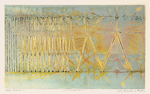 “I have lived to explore a series of plates, experimenting with colour processes. Along with the expressive potentialities of these methods grew I felt the need for developing new techniques of plate-preparation and new ways of applying colours to the plate – ways that are so essential for evolving new images in our art.” "From his early days at Atelier 17, he showed himself to be a most original and inventive artist and within a short time became one of my most valuable collaborators and later my associate in directing the Atelier 17 group, frequently replacing me in my absence. His experiments in our method of simultaneous color printing from a single plate led to the discovery of a very personal and elaborate operation which distinguished his work at that time and to this day from all of the other artists using the simultaneous method. “Krishna's spirituality is his art, his life, and his politics. His ability to invest this totality with the otherworldliness makes each engraved plate a subtle yet intensely satisfying creation.” “His prints continue to resonate with me through the power of his materiality and the vast fields of space and connectivity that he constructed and left behind.”